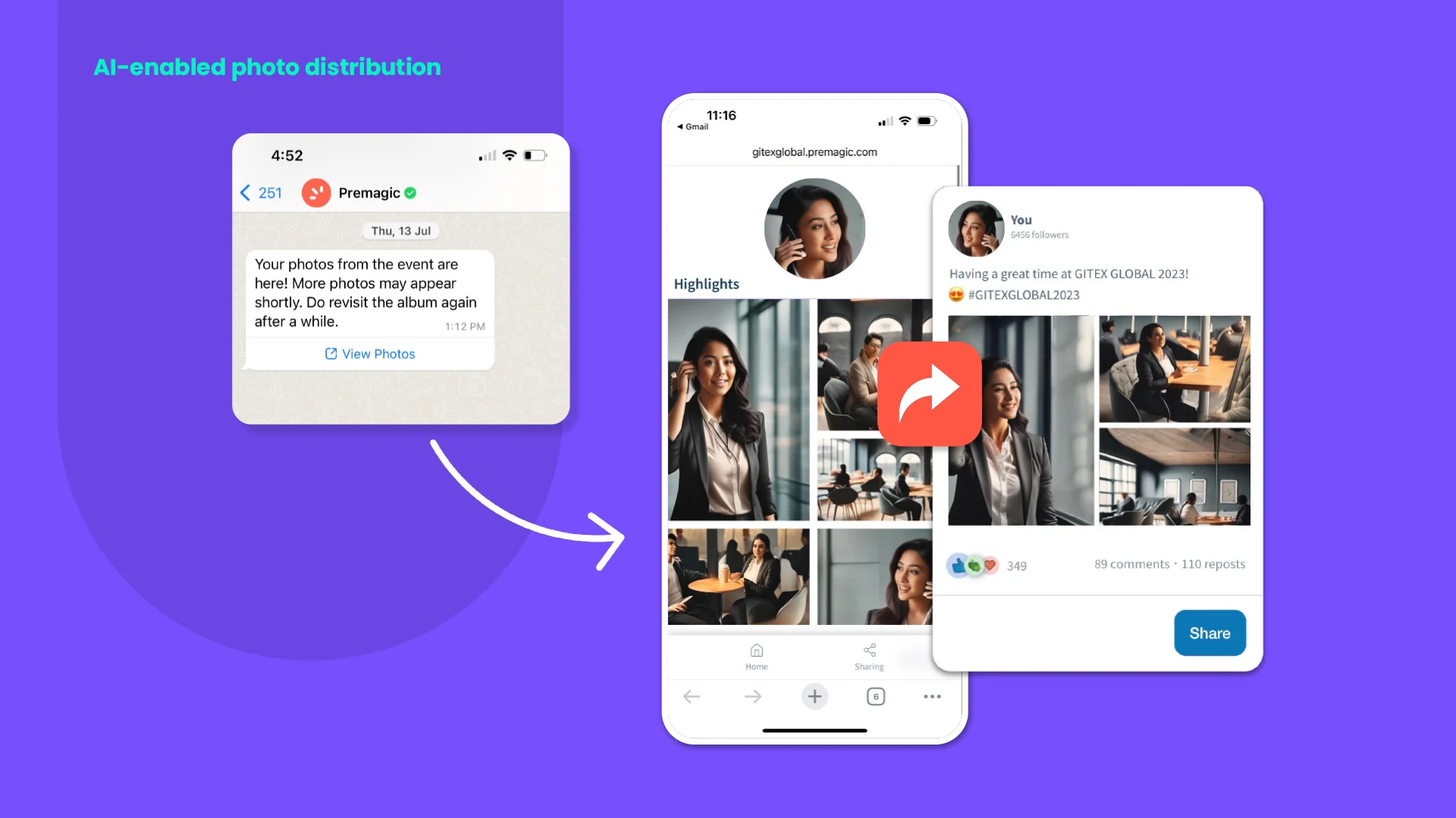 Delayed gratification kills buzz. Use a platform that delivers professional event photos to an attendee's phone via face-match or QR instantly. This sparks immediate sharing and offline "Did you see this?" moments while the energy is still high.